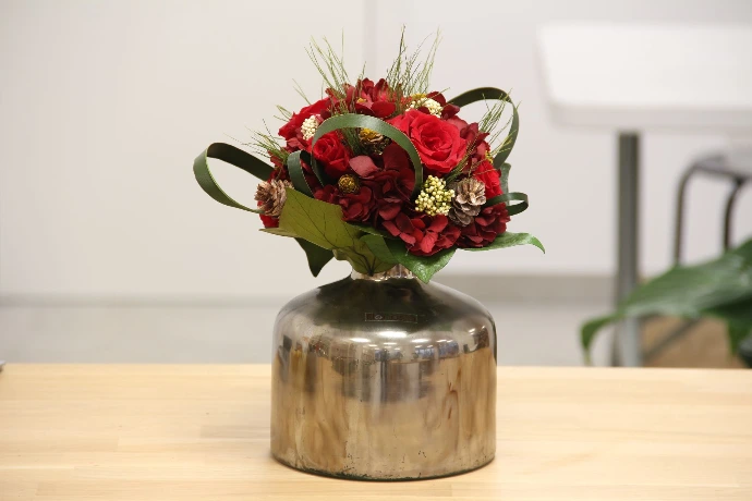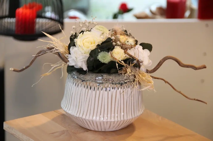 A côté de nos compositions classiques, nous vous proposons des collections saisonières, toujours à base de fleurs et feuillages stabilisés.